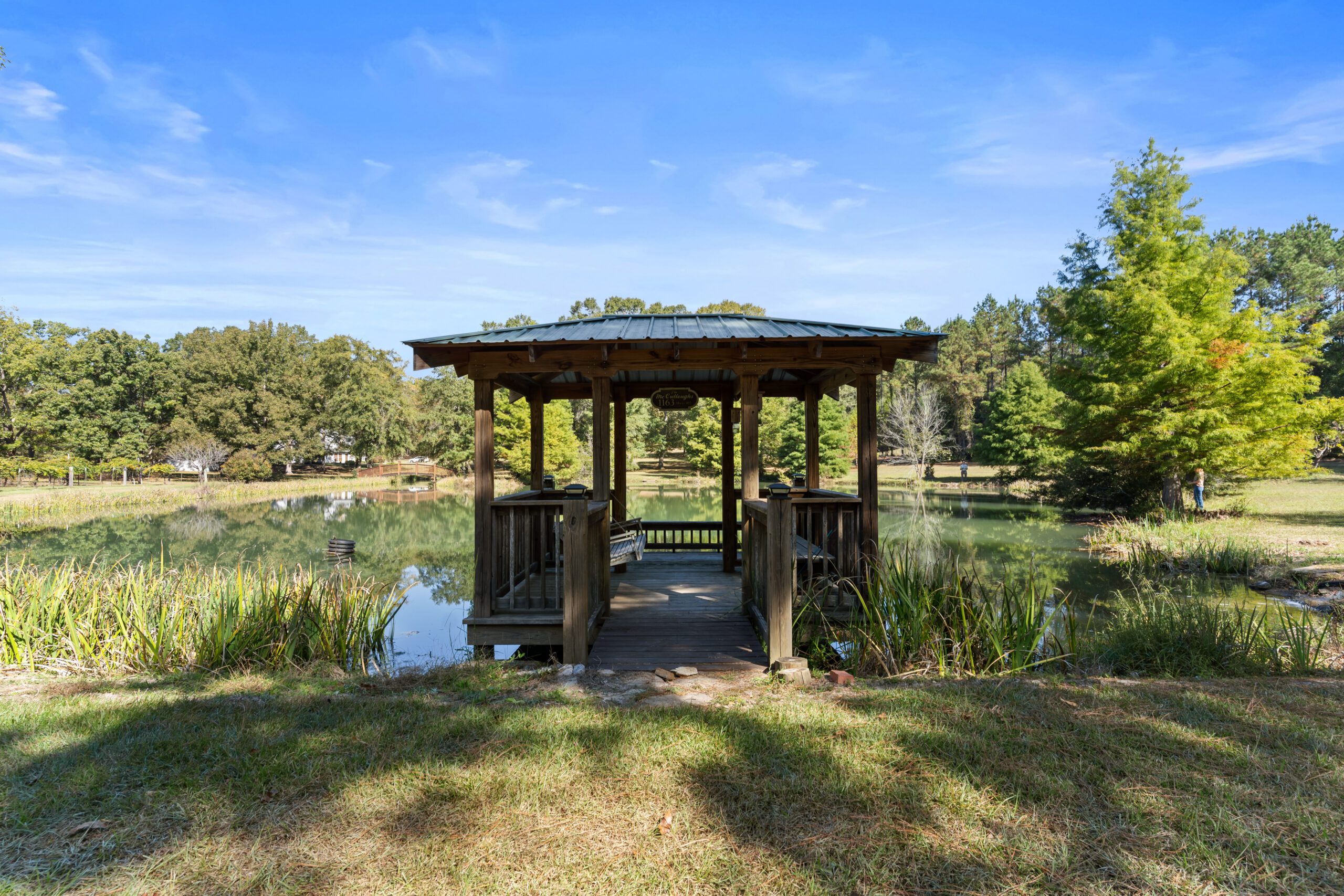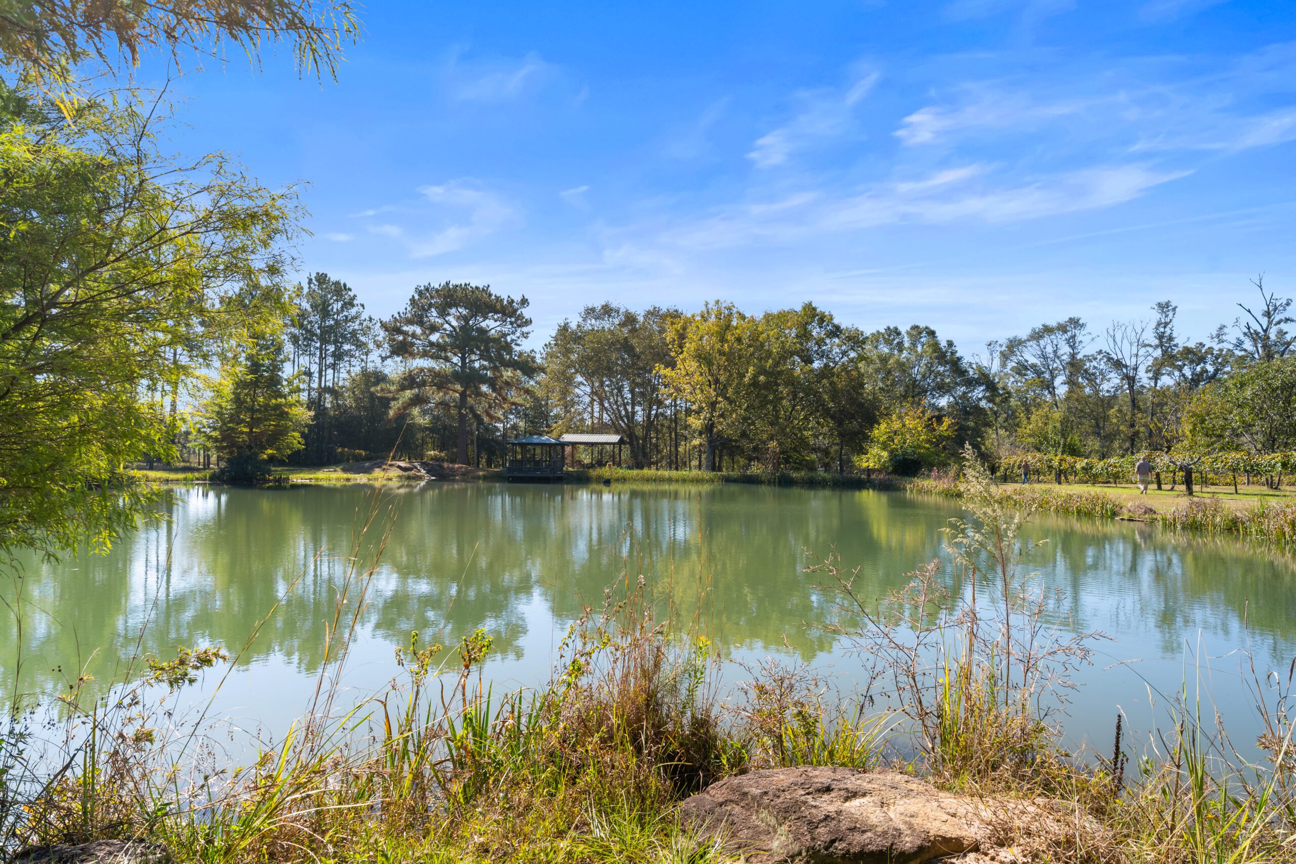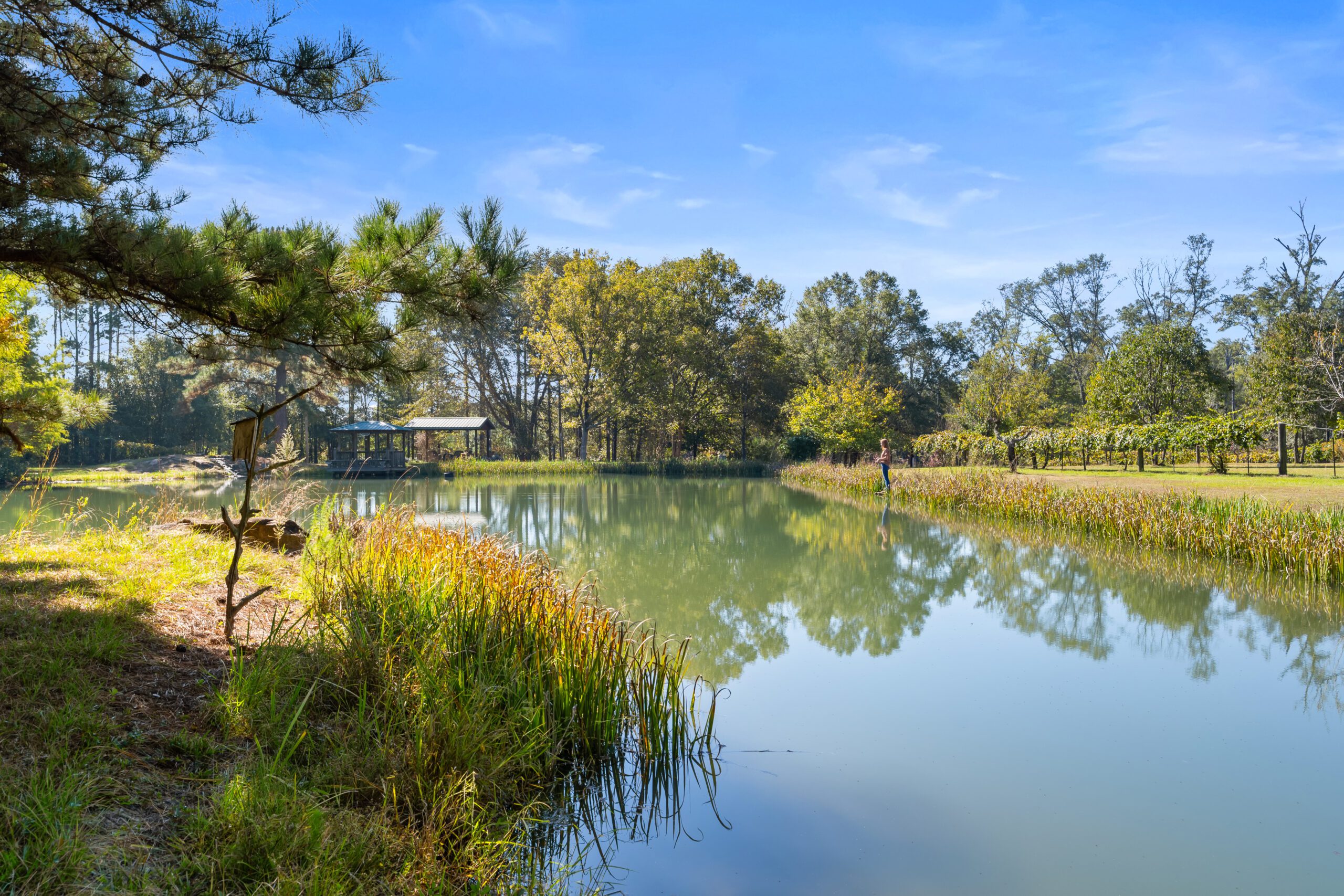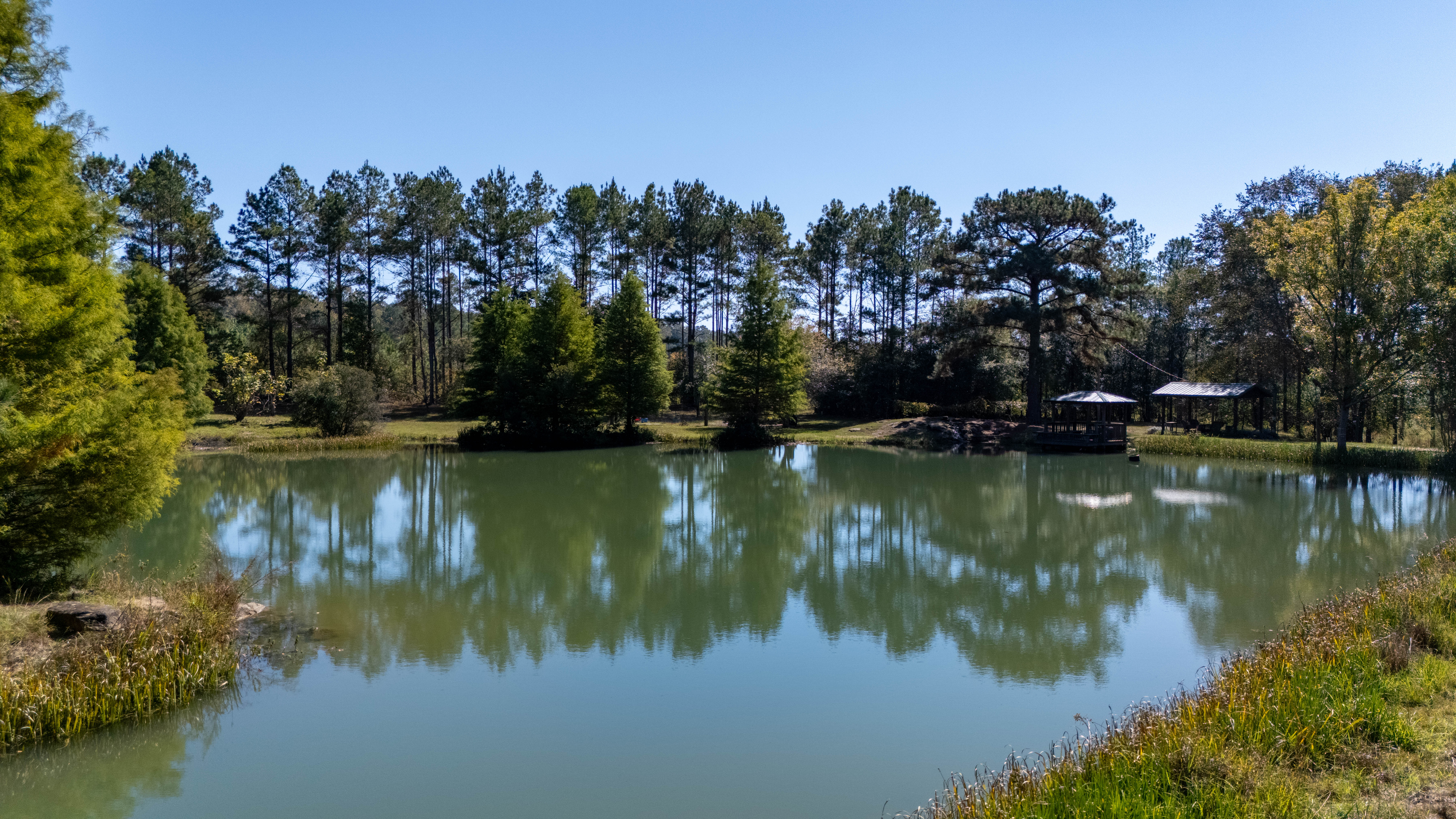 Behind the home, a canopy of mature water oaks creates a cool, shaded backdrop for quiet mornings, family gatherings, and children running barefoot through the grass. Steps away lies the spring-fed pond, clear and alive with bass and bream. A covered pier, a footbridge over an inlet, and a gazebo at the water’s edge make it a perfect place for sunrise coffee, evening fires, or simple stillness.