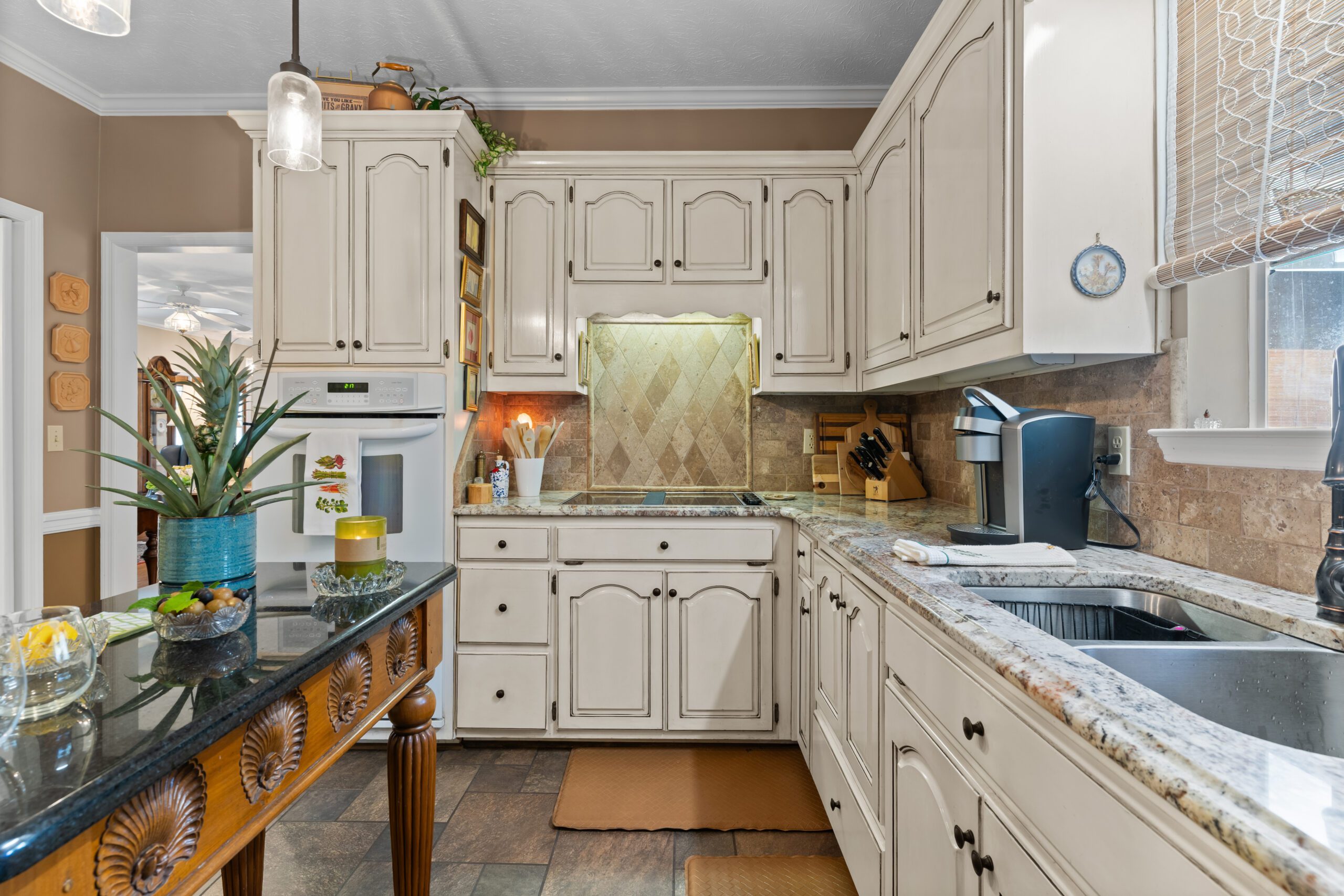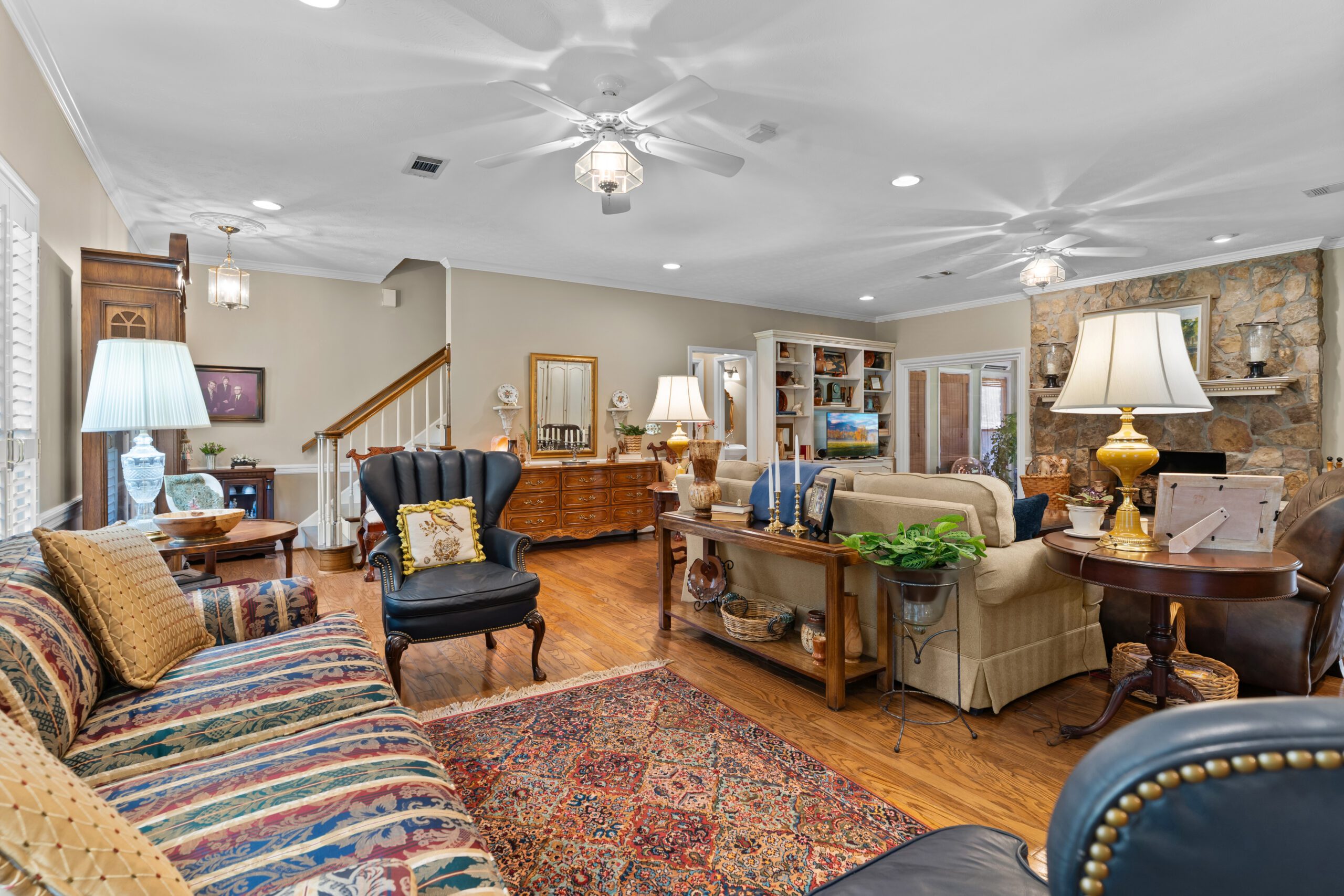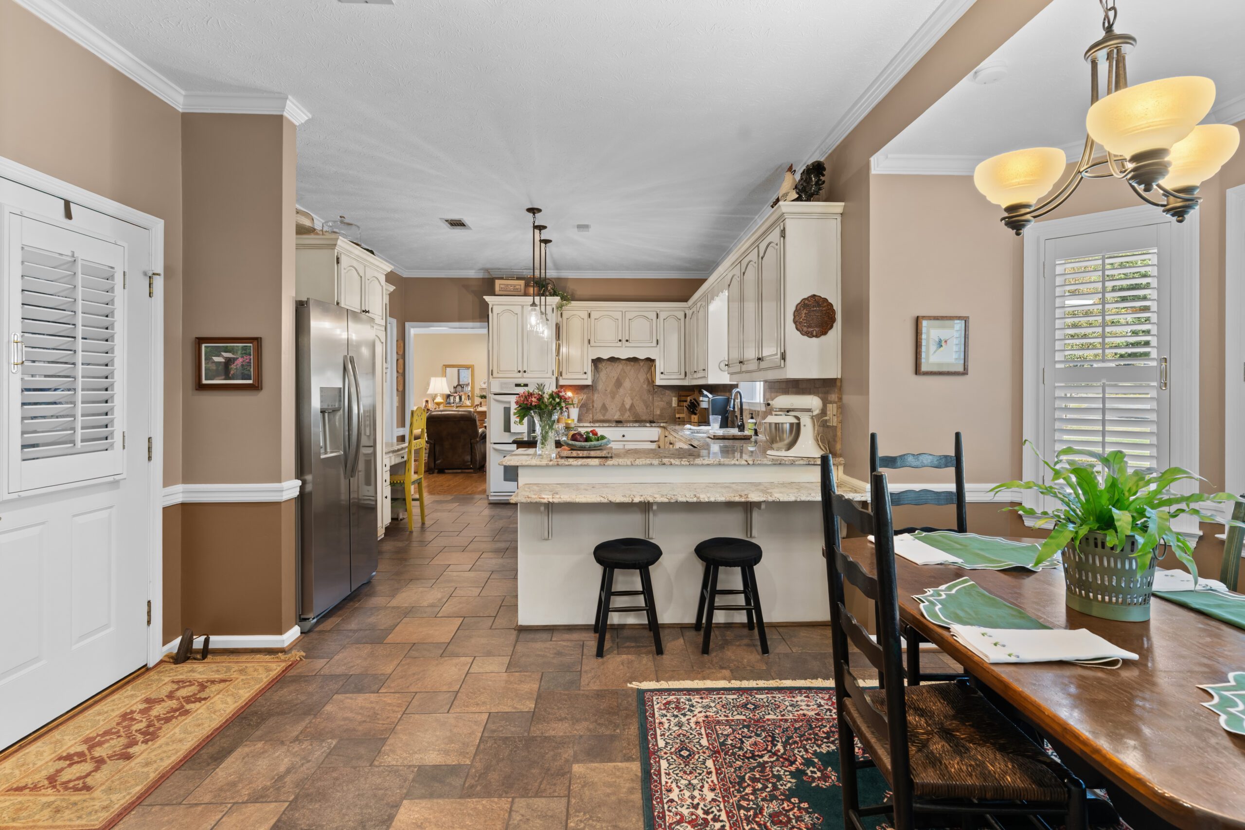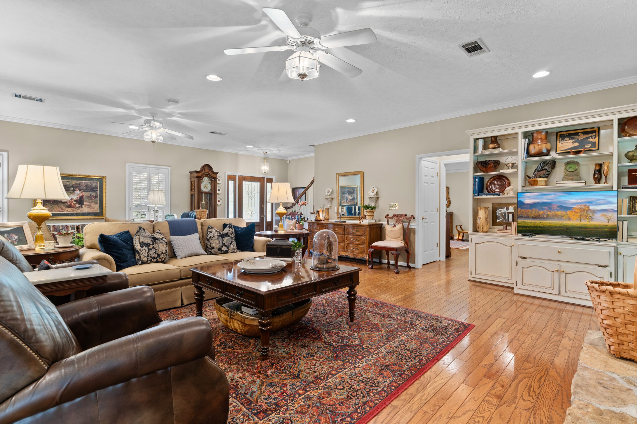 Behind the home, a canopy of mature water oaks creates a cool, shaded backdrop for quiet mornings, family gatherings, and children running barefoot through the grass. Steps away lies the spring-fed pond, clear and alive with bass and bream. A covered pier, a footbridge over an inlet, and a gazebo at the water’s edge make it a perfect place for sunrise coffee, evening fires, or simple stillness.
