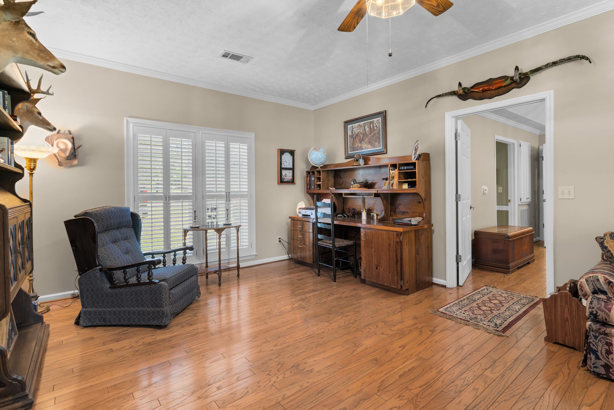 As you enter the gated drive, tall pines and hardwoods guide you toward the center of the property. The land opens into rolling yard and pasture, anchored by a well-maintained 3,800± sq ft home. From the front porch, you’ll watch deer and turkey drift through the hand-planted sawtooth oak grove, drawn in season after season by the acorns that have helped feed wildlife here for many years.